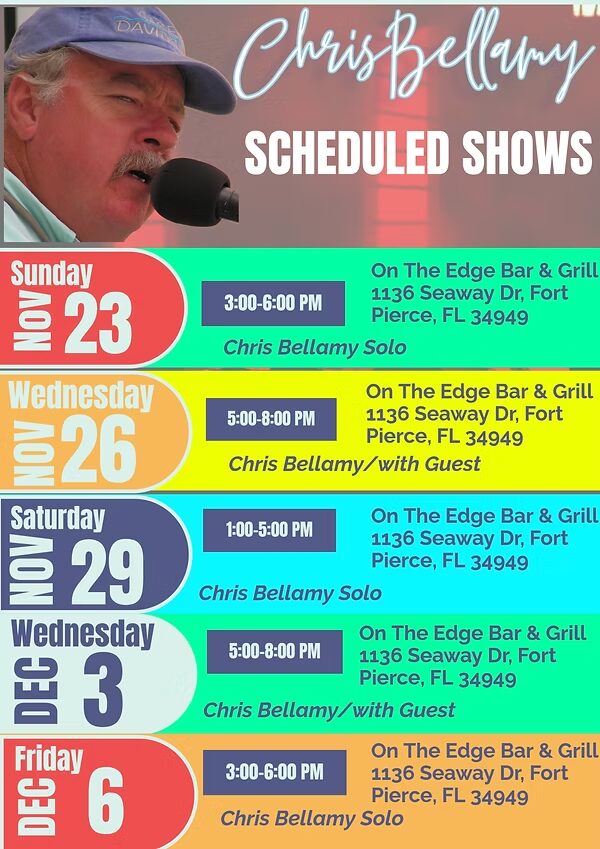 Well, welcome back! Hope it has been a great week for you. It has been a good week here at CBR. Chris had a great time at the Trailer Bar in Surf City on Saturday (yesterday). Not only was the weather great, but it brought out a crowd. Also, as some of you have heard,... by Chris Bellamy | Nov 15, 2020 | Music Charts, Uncategorized, Website Announcement